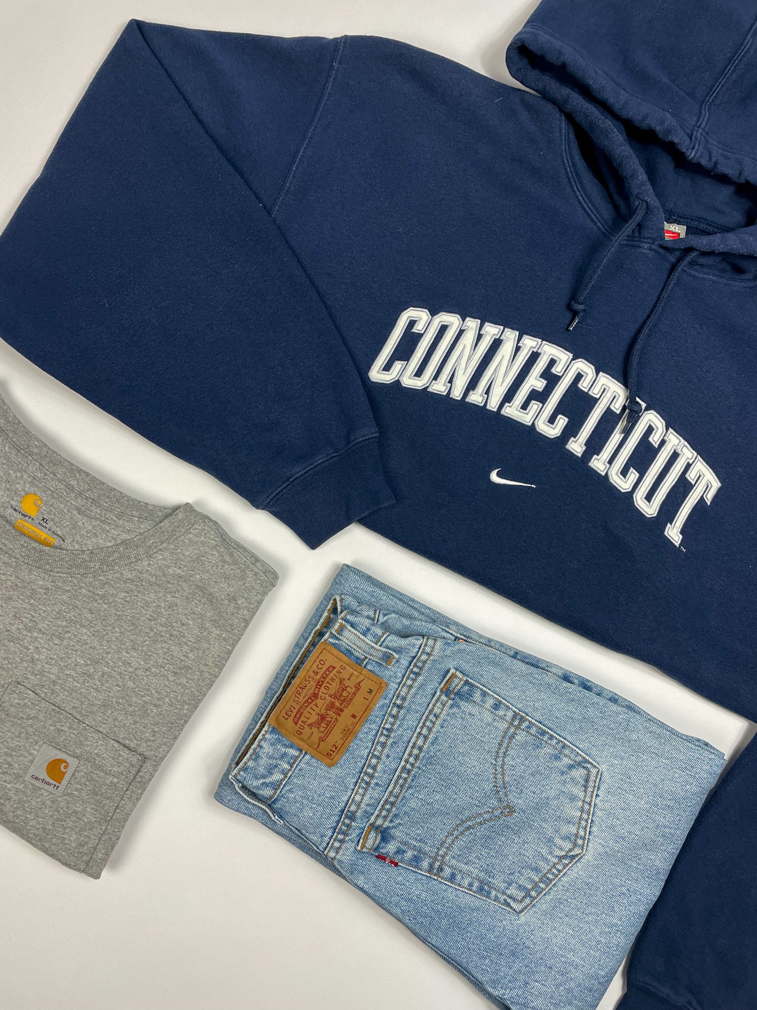 Chez OTHR, on a voulu réinventer la façon de s’habiller. On propose des box mystères de vêtements vintage et streetwear, que tu composes toi-même par type (t-shirt, pull, pantalon, sweat). Tu choisis les catégories, et nous on s’occupe de la surprise. Un moyen fun, responsable et abordable de renouveler ton style.